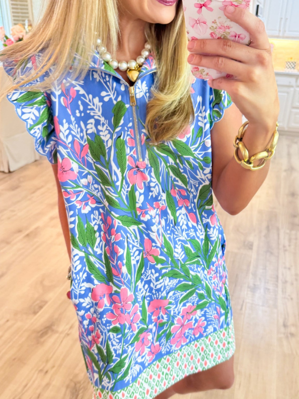 We are glad you clicked our Blue Multi Floral Print Half Zip Dress because we really like its casual vibe! The Dress design makes it a great choice for any fashion girl.