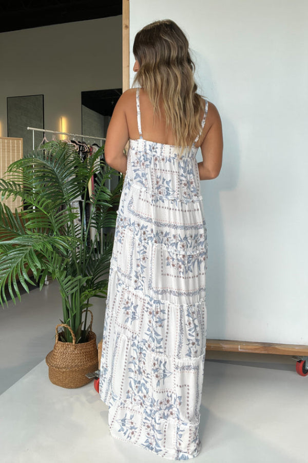 Sweetheart Neckline Hi-Lo Maxi Dress with Adjustable Straps and Gathered Center and Smocked Back Detailing