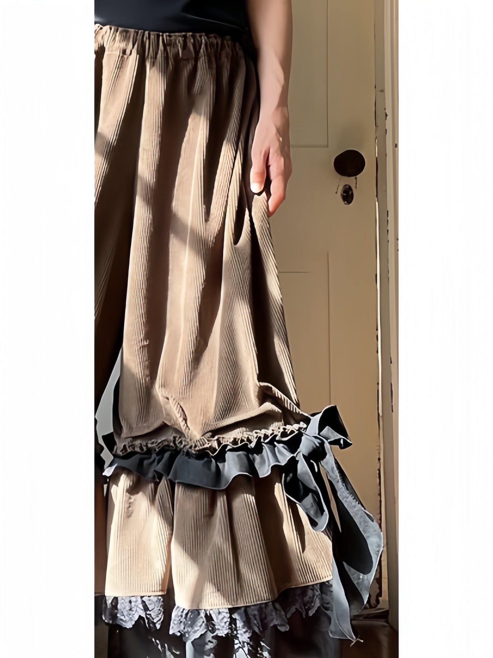 Corduroy Wide Ruffle Bowtie Bloomers Pants