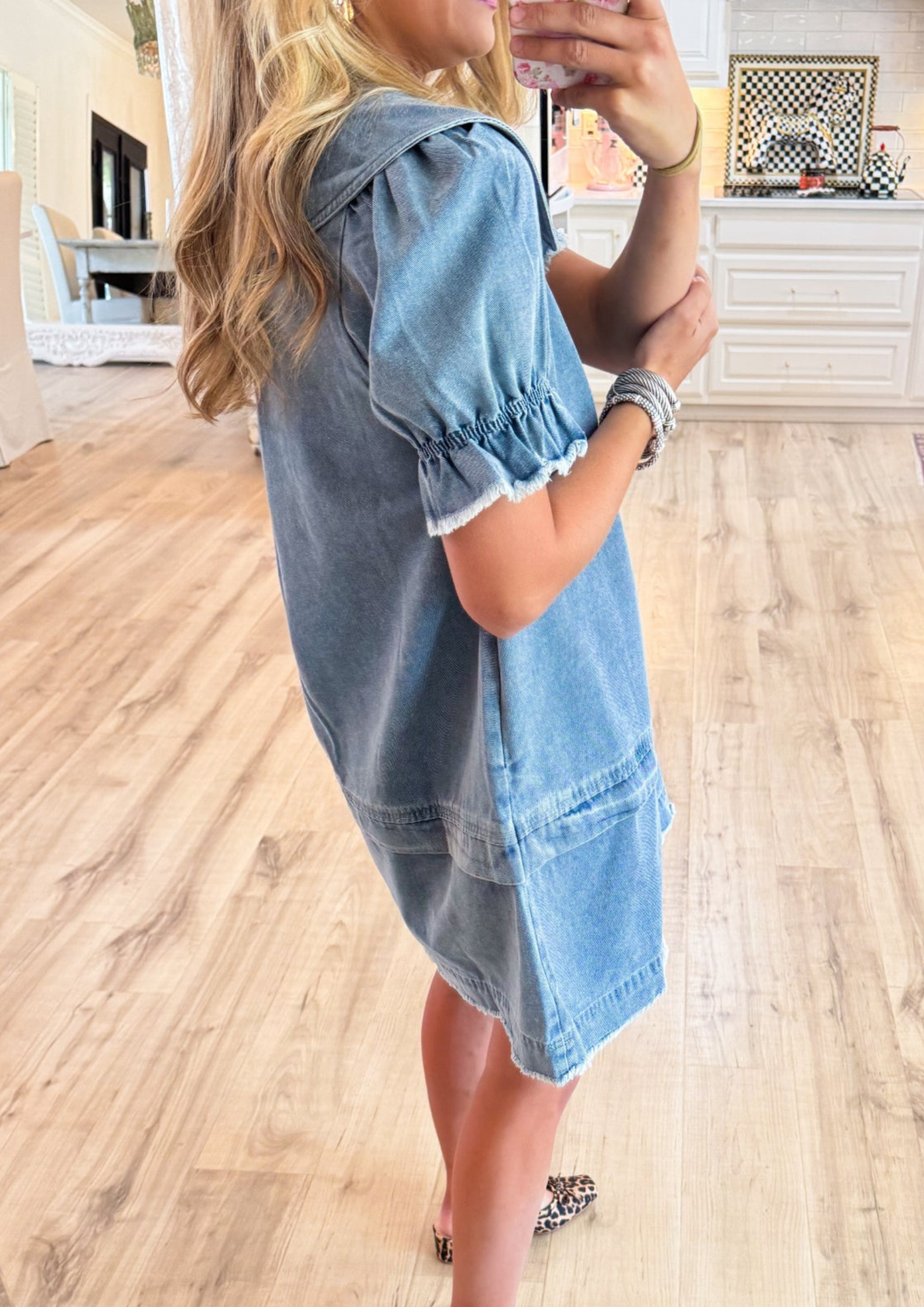 We are glad you clicked our Denim Doll Collar Mini Dress because we really like its casual vibe! The Dress design makes it a great choice for any fashion girl.