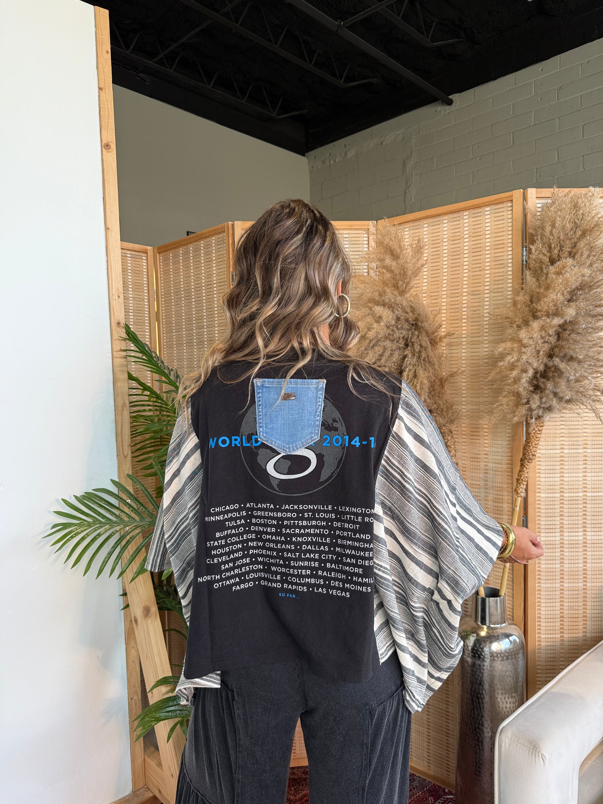 Washed Vintage Graphic Tee with Batwing Sleeve
