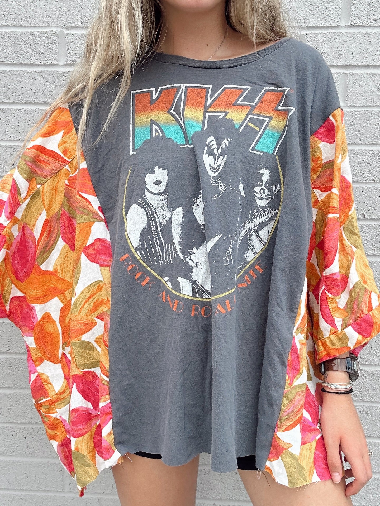 This T-shirt is the perfect combination of party glamour. Made from lightweight printed fabric, it's custom-designed and crafted to ensure perfect coverage in all the right places. The loose silhouette offers a touch of style and sophistication. Whether you're attending a special event or a band party, this T-shirt is sure to make a lasting impression. Details and Care: Hand wash in cold water with like colors. Do not soak. Do not bleach. Do not tumble dry. Tumble dry immediately in the shade. Iron on low heat. Dry clean. One size fits all. Top length: 62 cm (18 in). Sleeve length: 47 cm (20 in). Shoulder width: 54 cm (18 in). Chest: 132 cm (5 in).