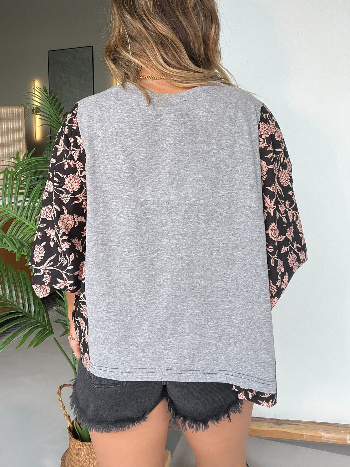 Washed Vintage Graphic Tee with Batwing Sleeve