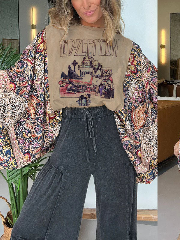 Washed Vintage Graphic Tee with Batwing Sleeve