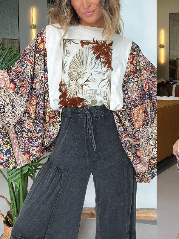 Washed Vintage Graphic Tee with Batwing Sleeve