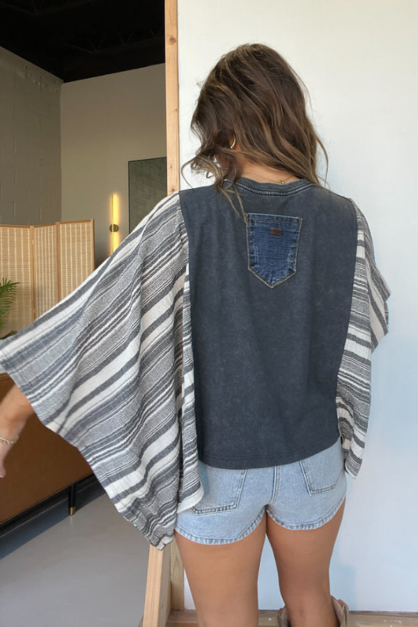 Washed Vintage Graphic Tee with Batwing Sleeve
