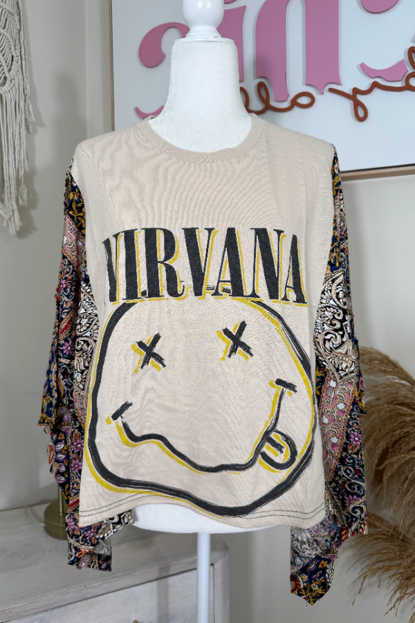 Washed Vintage Graphic Tee with Batwing Sleeve