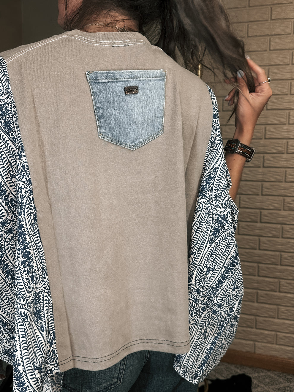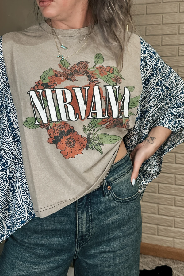 Washed Vintage Graphic Tee with Batwing Sleeve