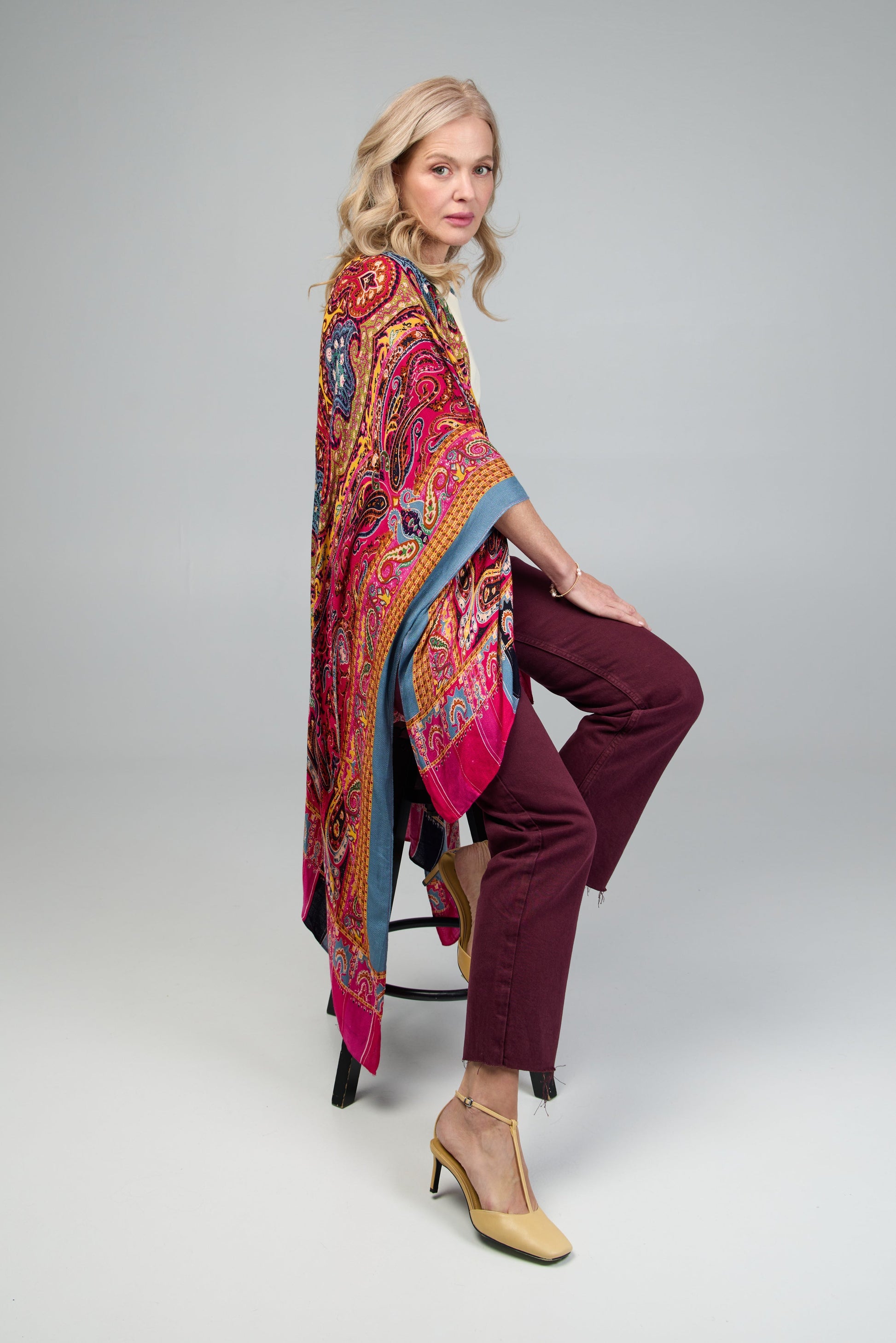 Experience the luscious silhouette of our Paisley High Low Kimono. The chic, open-front design and durable, soft fabric make it the perfect choice for any season. The colorful and boho flair this piece offers is bound to elevate any pair of jeans, shorts, or dress.