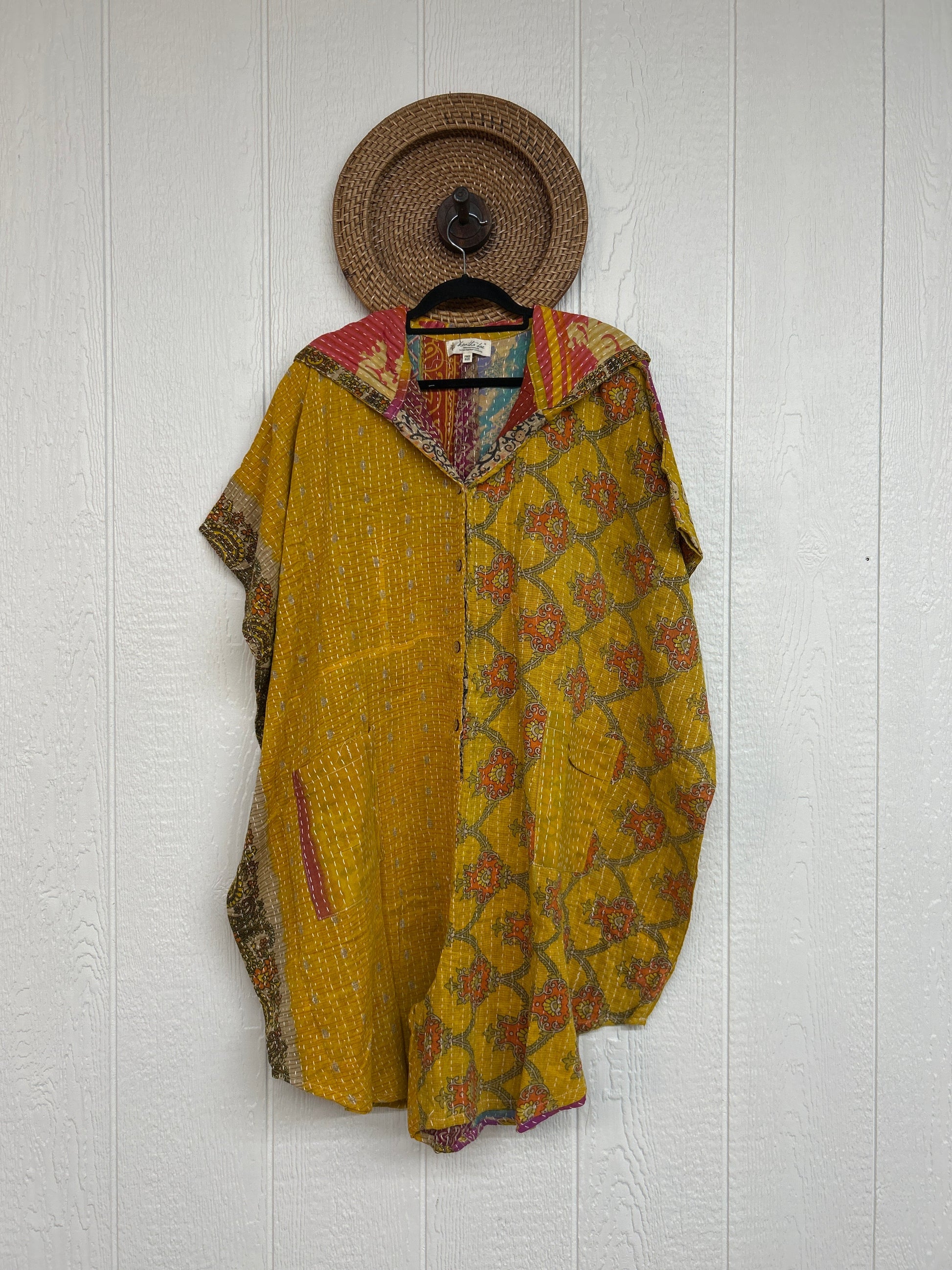 Disclosure: Our vintage styles have lived a full life before becoming the designs in our shop. Fabrics may have small threads or holes in the layers. Color inconsistency or small stains may be present. The saris are sewn together and extend the life of each design. Imperfections should be celebrated.