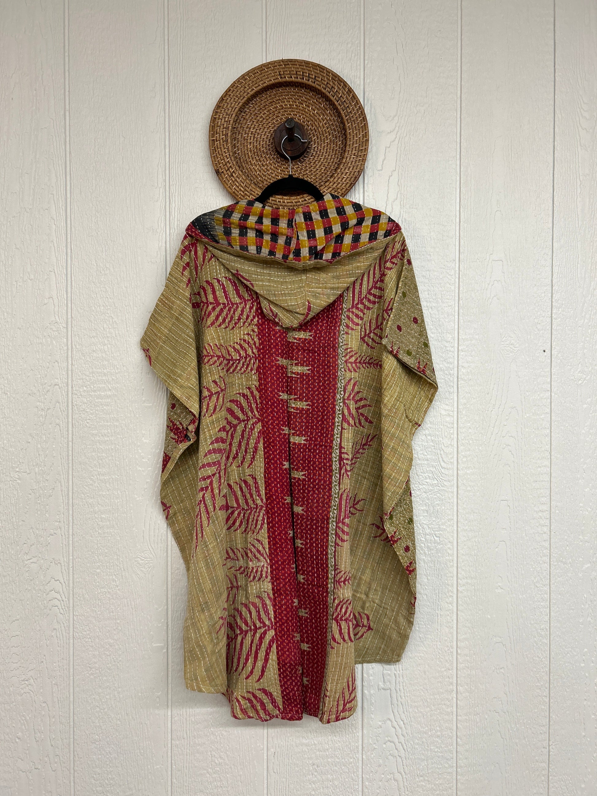 Made from our hand Kantha stitched cotton sari, this one piece wonder features a hood, front button-down closure, pockets, and super flowy shorts. Size Recommended 00-20/22. Crafted and sewn by families in a small village in Northern India, providing work and a fair living.