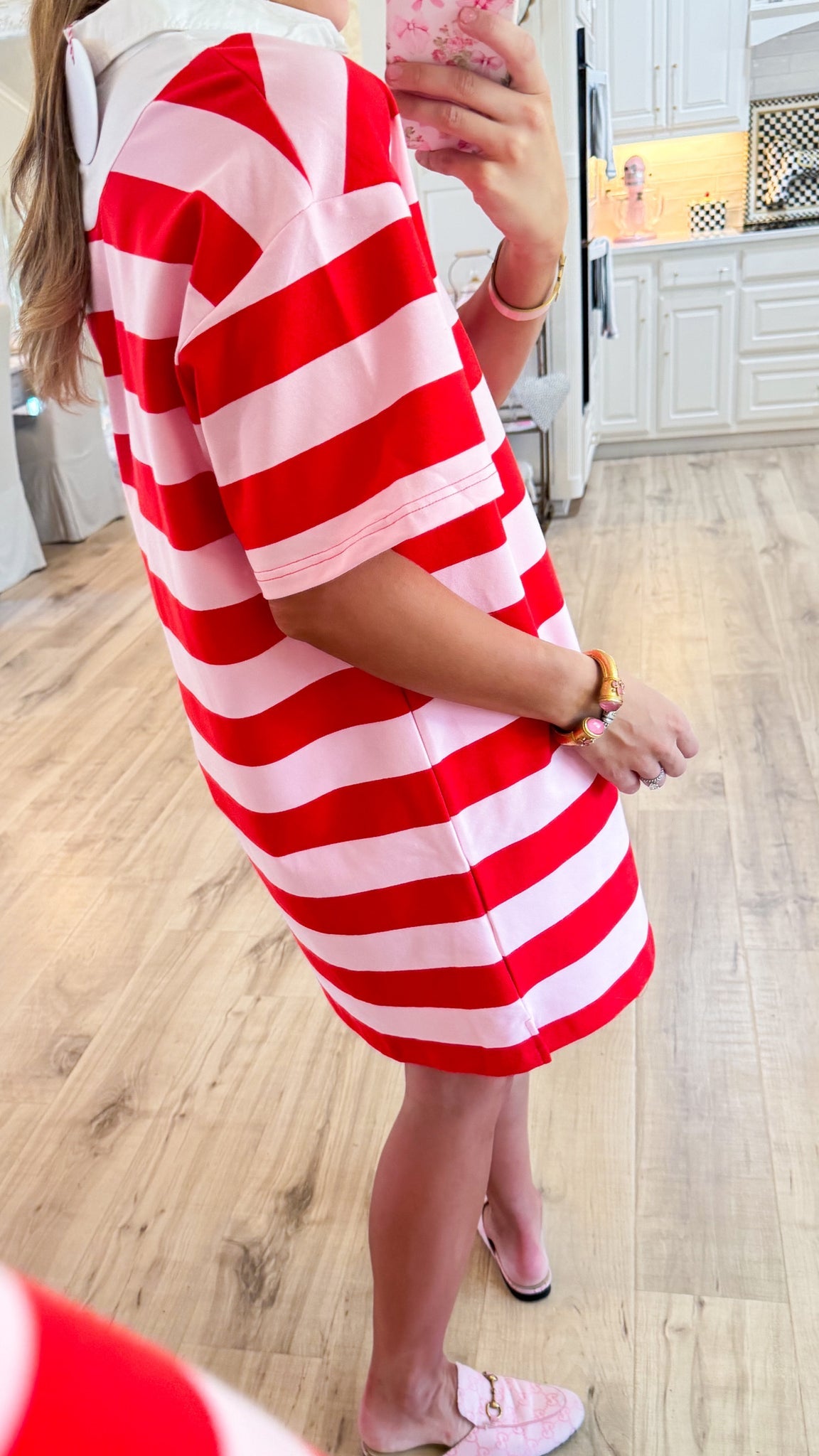 We are glad you clicked our Pink and Red Stripe Collared Dress because we really like its casual vibe! The Dress design makes it a great choice for any fashion girl.