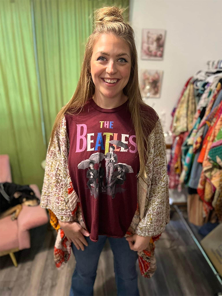 Magnifique courtepointe vintage en kantha et t-shirt graphique pour ce poncho FABULEUX. Les courtepointes vintage Kantha sont très appréciées. Ils peuvent avoir des cordes blanches (qui peuvent être coupées), de légers trous, de petites taches, et peuvent être altérés, rustiques et en lambeaux, ce qui confère à la beauté vintage du plateau. Parfaitement imparfait ! ️