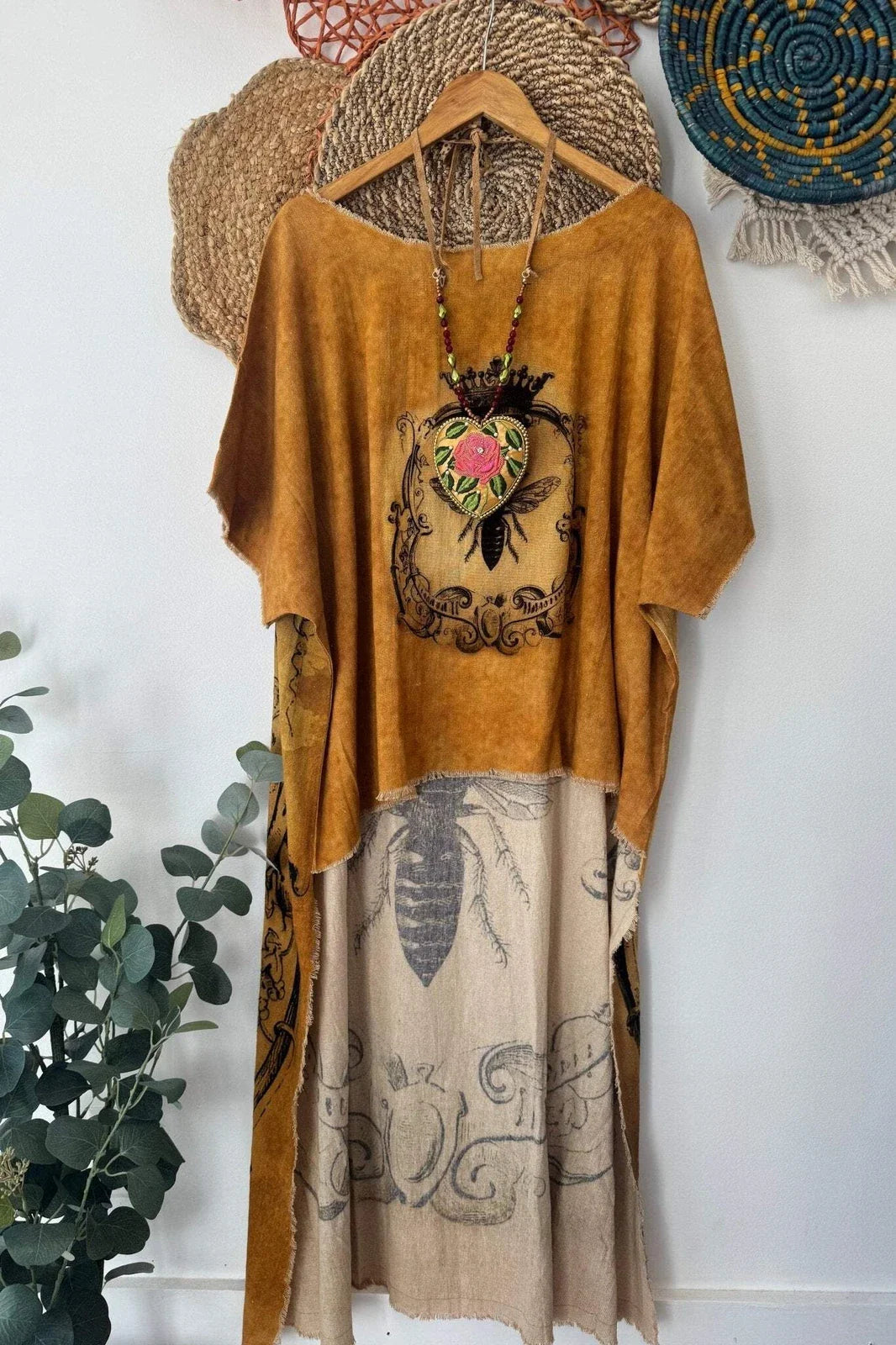 With its breezy lightweight fit, raw edge detailing, and whimsical front appliqué patch, this tunic blends comfort with creativity. The flattering hi-lo hem adds movement and flow — perfect for festivals, brunch dates, or just living your boldest life.