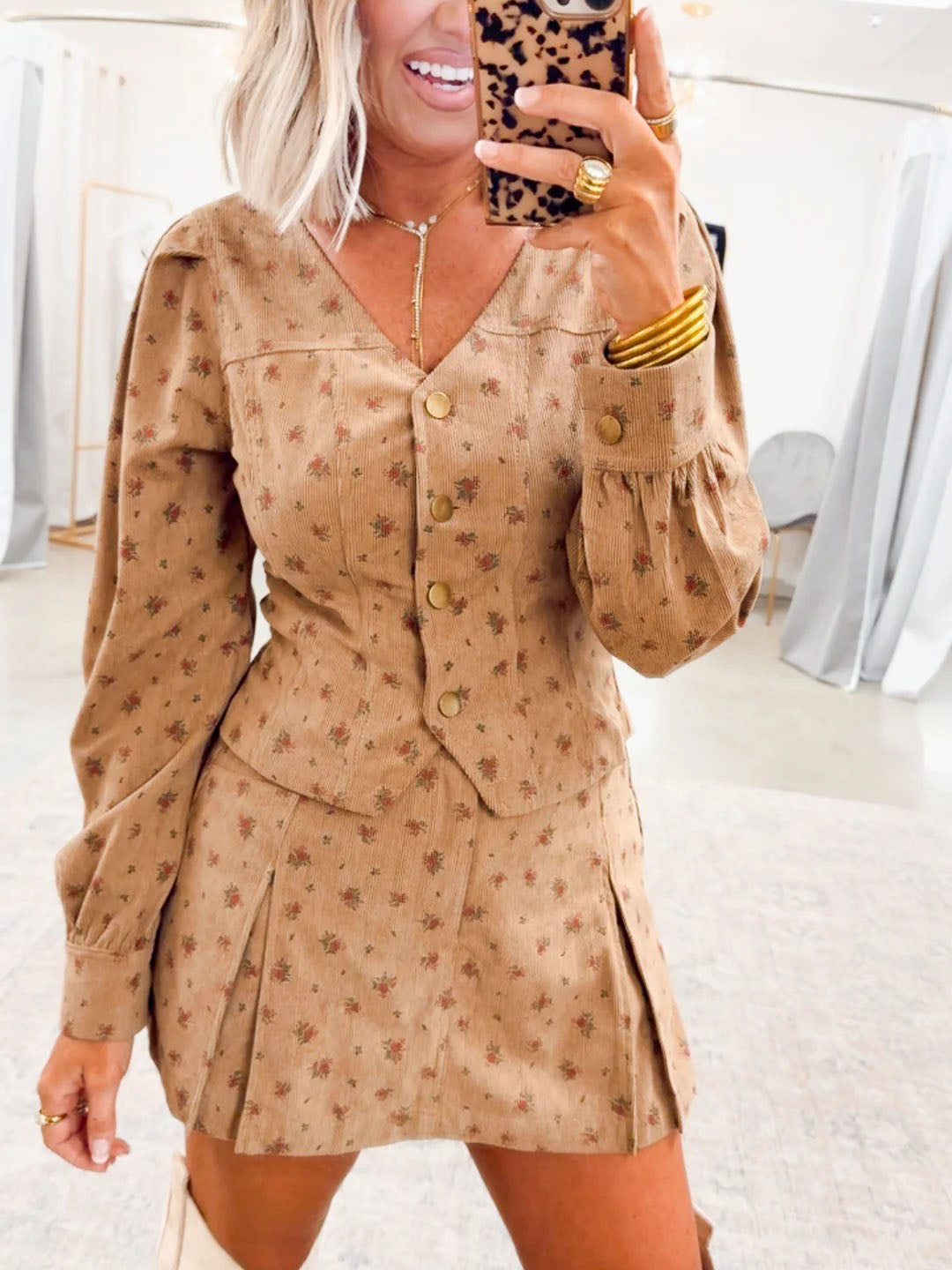 Fabric: Soft floral-printed corduroy with subtle vintage vibes