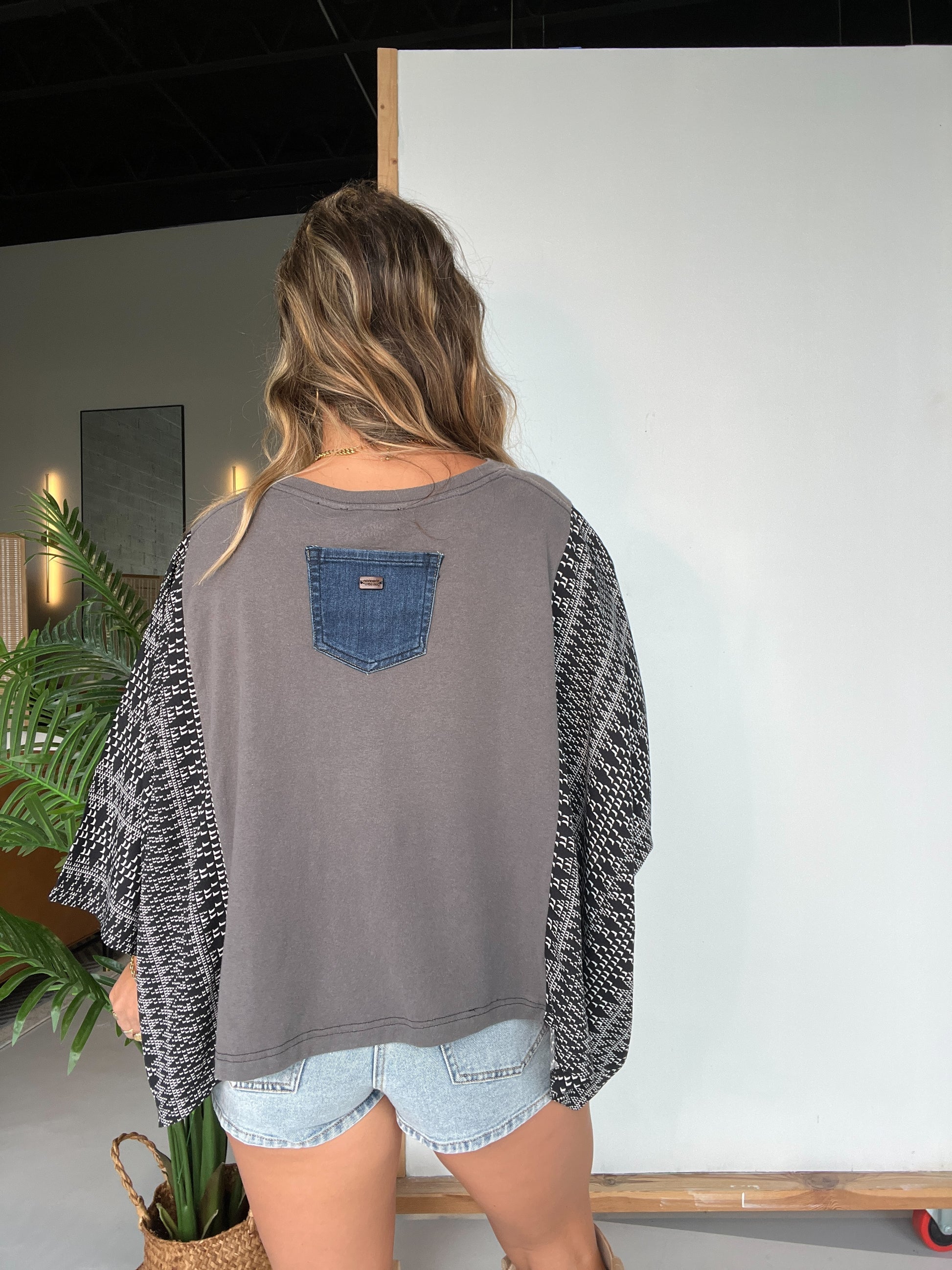 Washed Vintage Graphic Tee with Batwing Sleeve