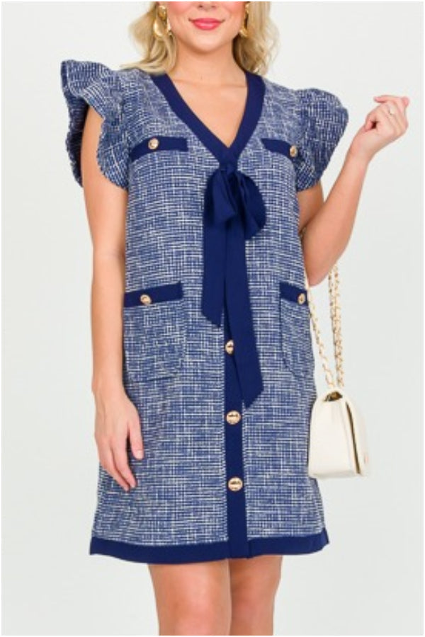 Tweed Bow Button Dress