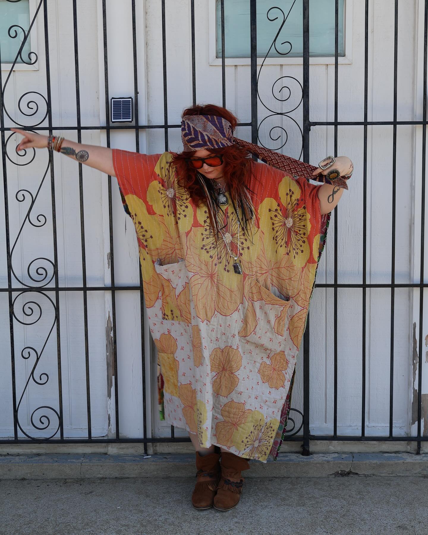 This design features our ultra-luxe vintage cotton. Recommended sizes 00-24. This product should be hand washed and line dried to extend its life. For softness, fluff in the dryer on low heat after hand washing. Disclosure: Our vintage styles have lived a full life before becoming designs in our store. There may be small threads or holes in the layers of the fabric. There may be color inconsistencies or minor stains. The sarees are stitched together to extend the life of each design. Imperfections should be celebrated.