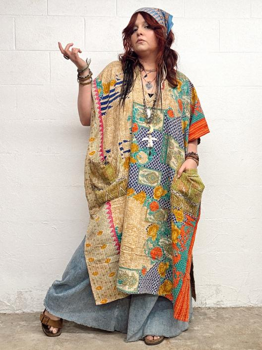 This design features our ultra-luxe vintage cotton. Recommended sizes 00-24. This product should be hand washed and line dried to extend its life. For softness, fluff in the dryer on low heat after hand washing. Disclosure: Our vintage styles have lived a full life before becoming designs in our store. There may be small threads or holes in the layers of the fabric. There may be color inconsistencies or minor stains. The sarees are stitched together to extend the life of each design. Imperfections should be celebrated.
