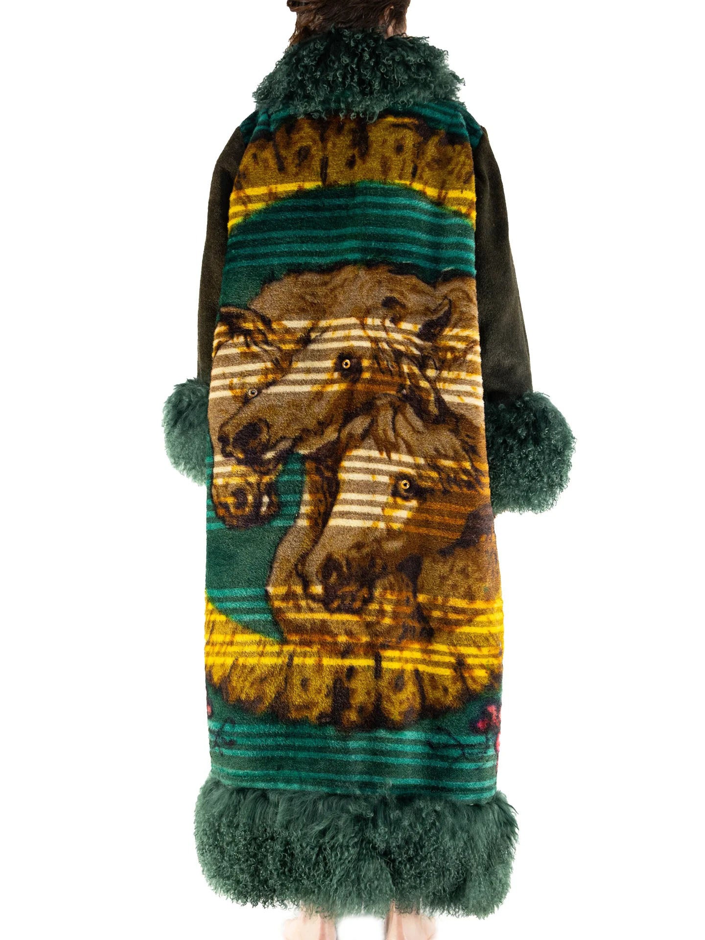 Vintage Faux Fur-Trimmed Patterned Maxi Coat