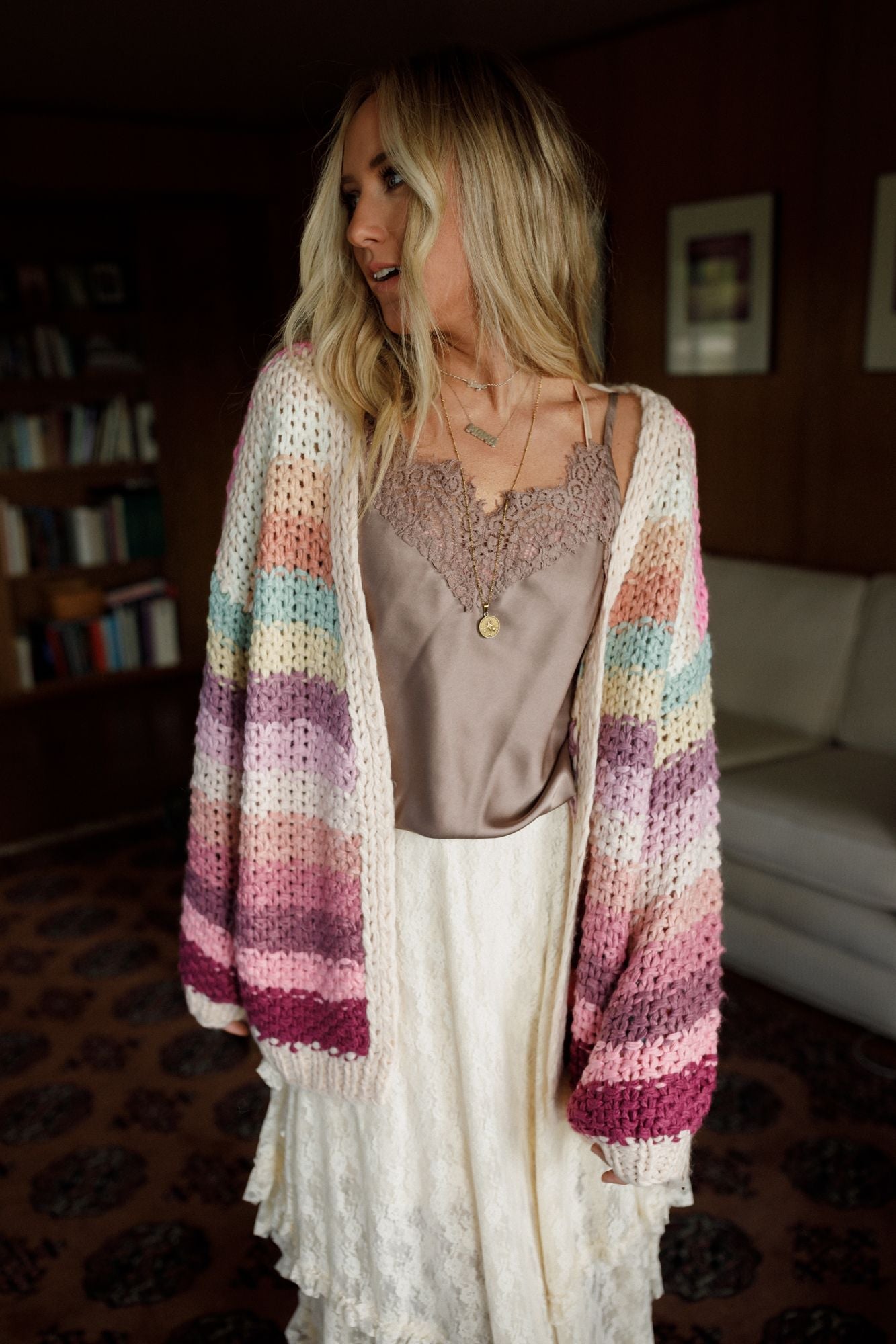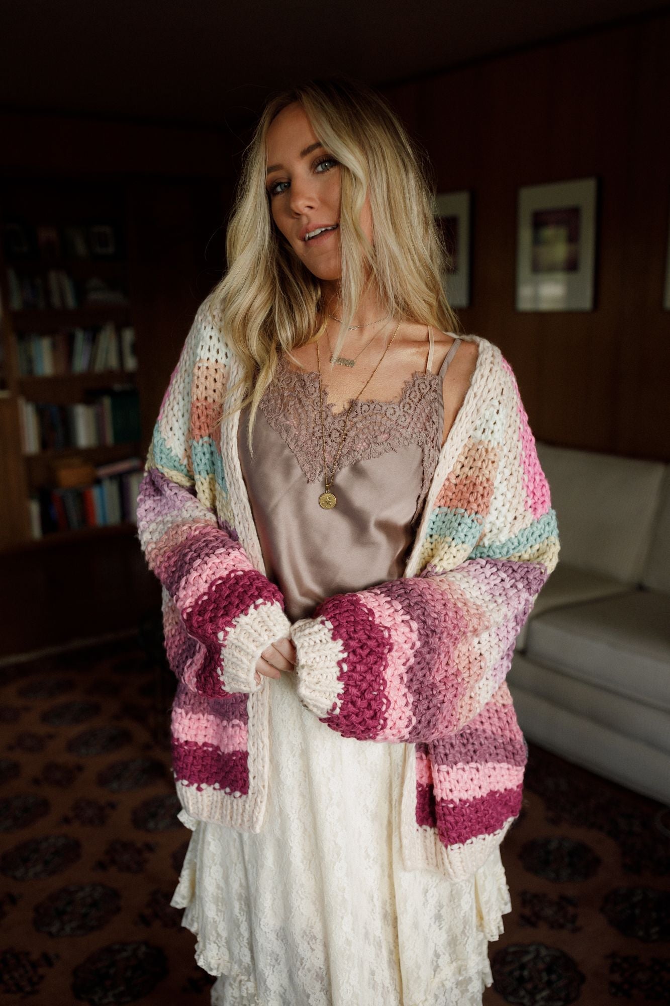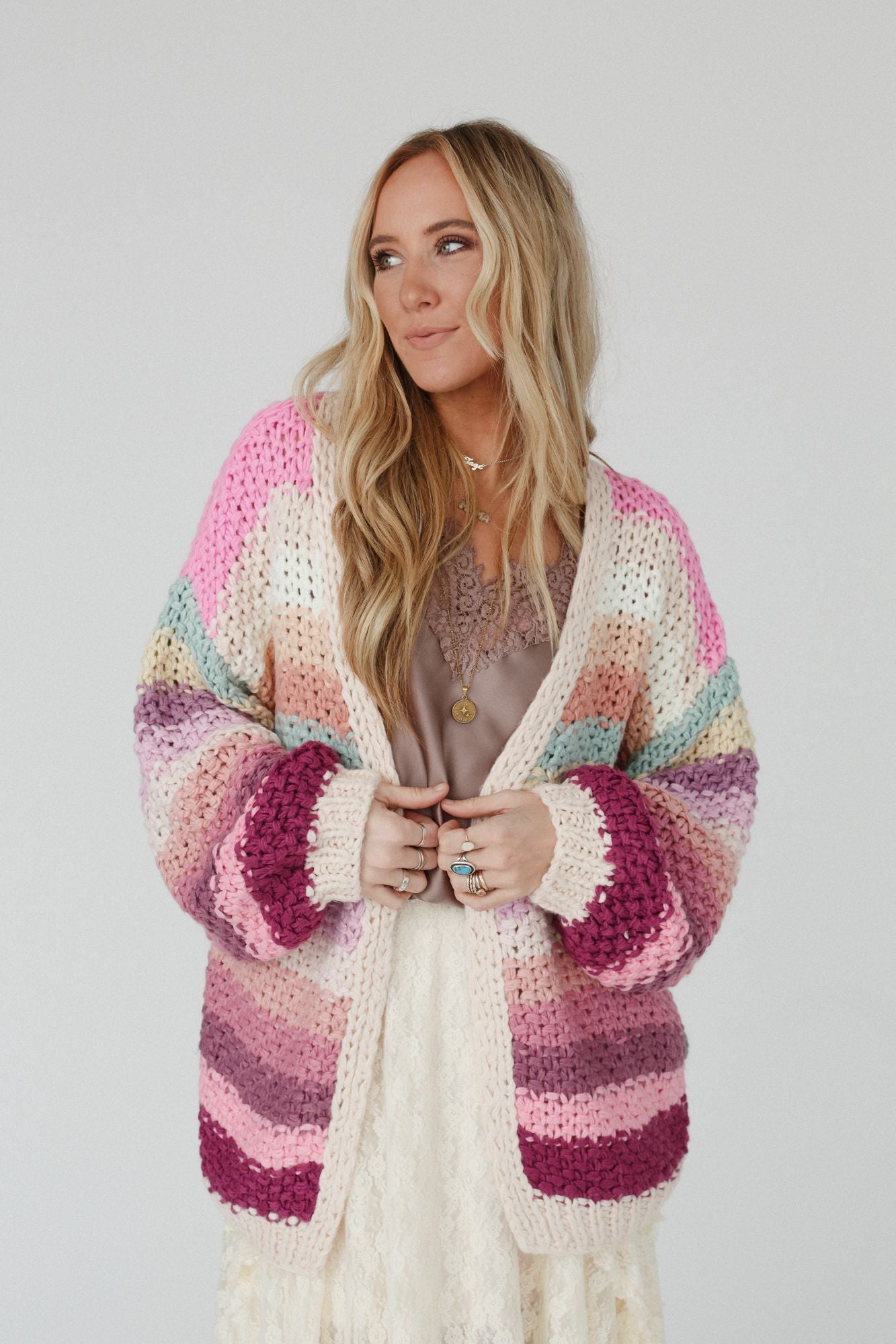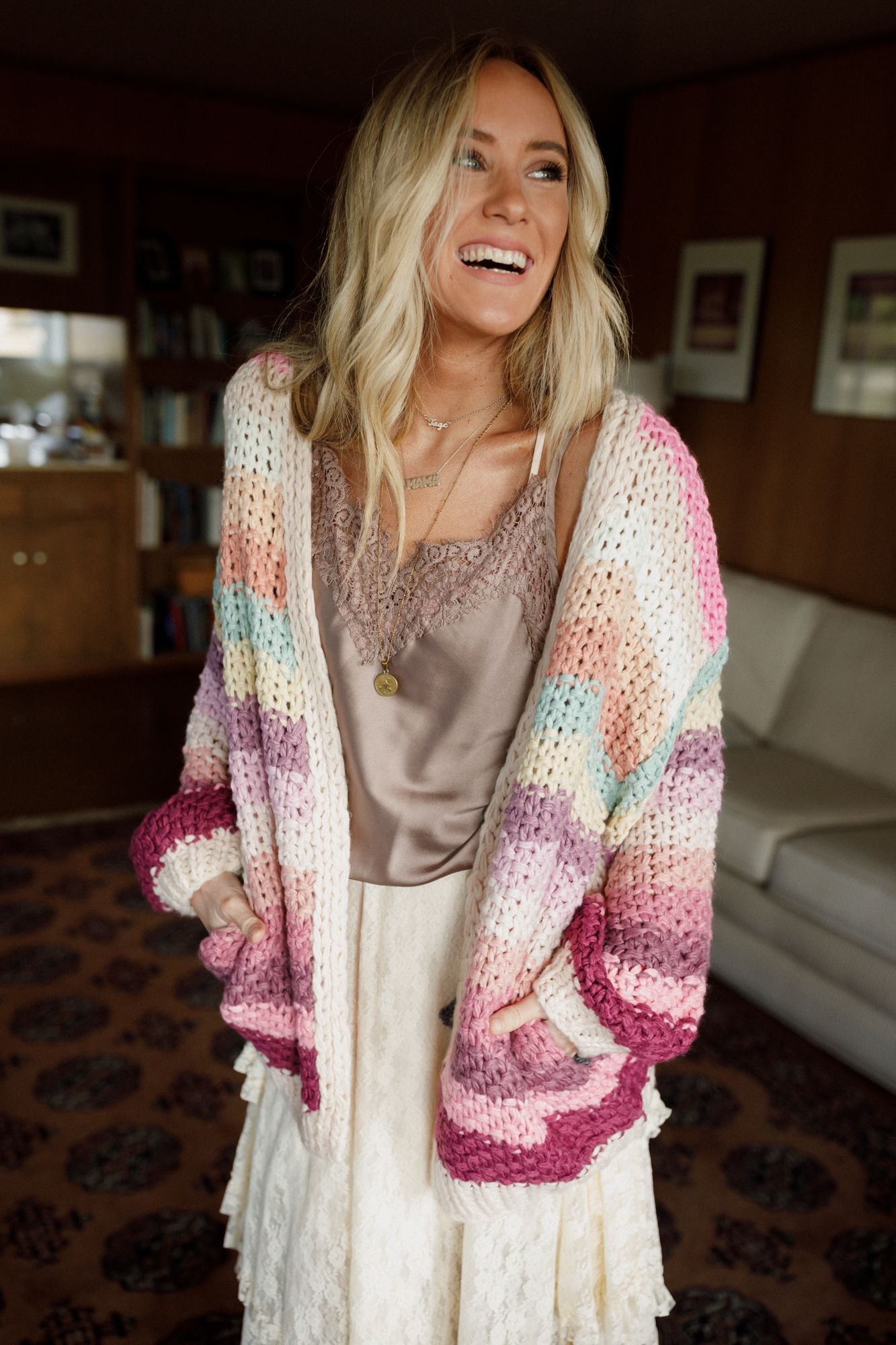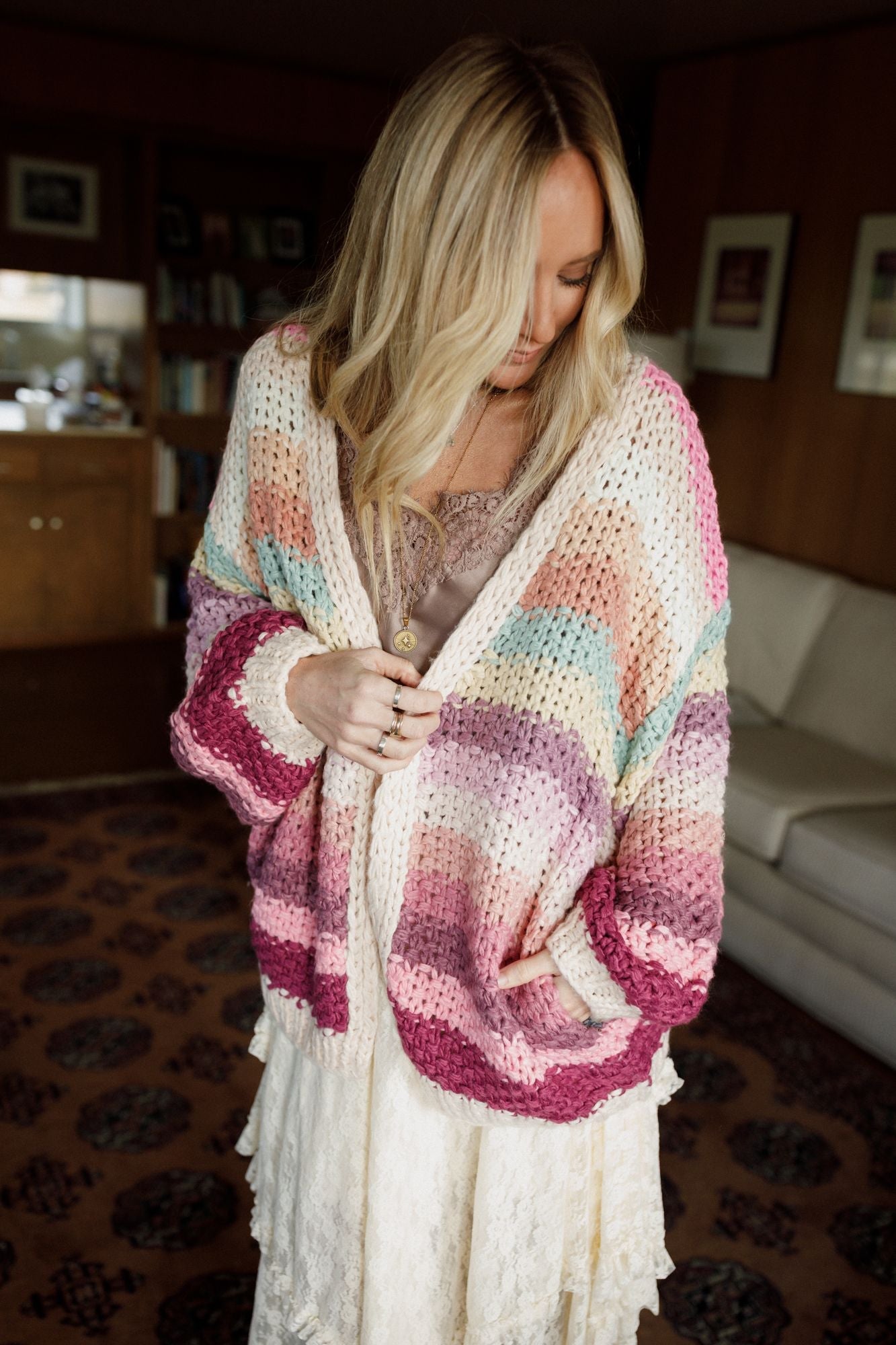 Wrapped up in Color Knit Cardigan - Pink Multi